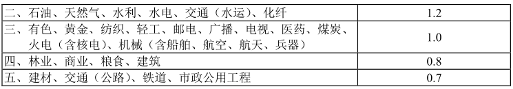 本合同行業(yè)調(diào)整系數(shù)按下表取值為: