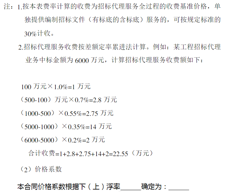 注:價(jià)格系數(shù)=1±下(上)浮率(%)